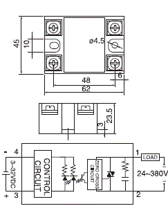 四. 单相固态继电器外形尺寸和安装接线图:(单位:mm)